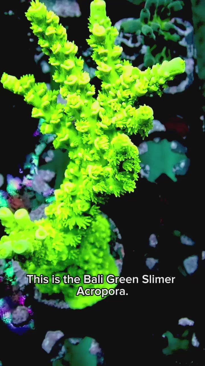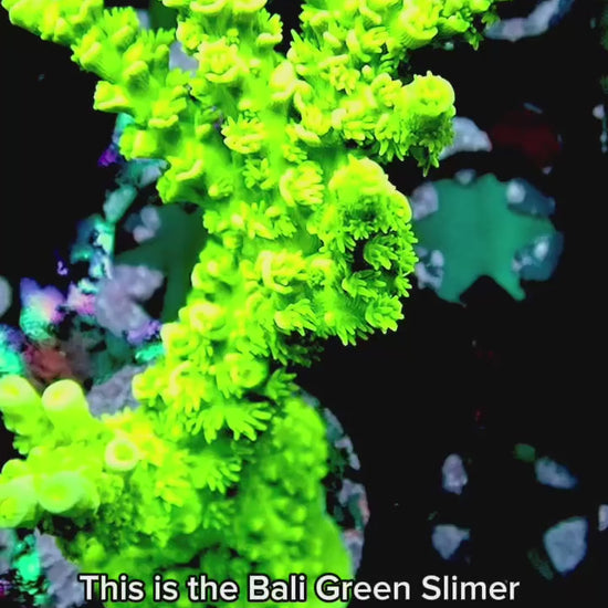 Green Slimer Acropora is a classic, fast-growing staghorn known for intense neon green coloration and unusually long, stringy mucus production when handled. Itβs hardy, fast, and great for aquaculture.